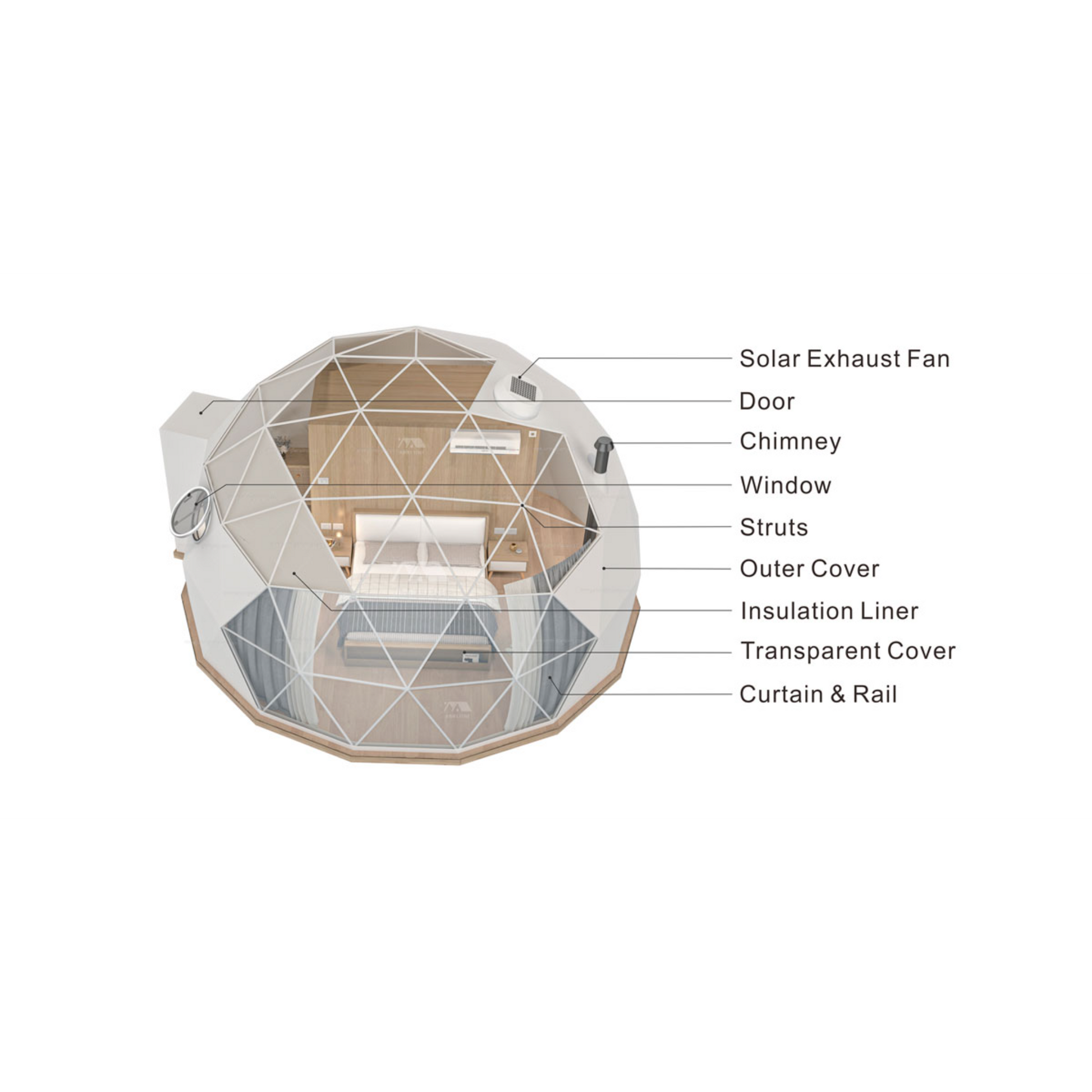 Domes can be installed on either a wooden platform or cement base. We recommend sourcing platforms locally to reduce shipping costs. Please note, we do not provide a floor deck or wooden platform, but we do include bolts suitable for both wood and cement foundations. Clear setup instructions are included, and we recommend hiring local builders or carpenters to assist with assembly. Customers are responsible for arranging a forklift at the delivery site to unload materials.