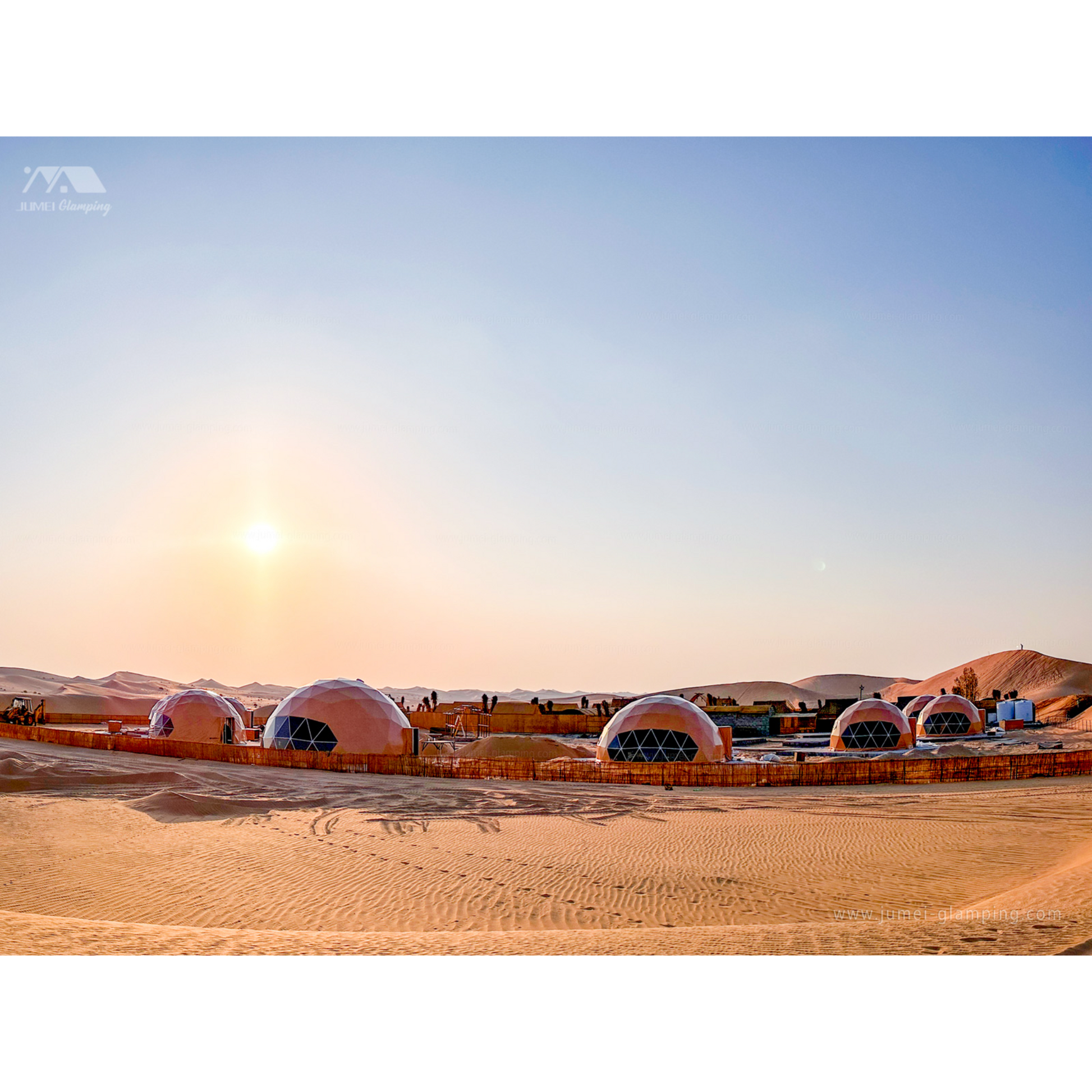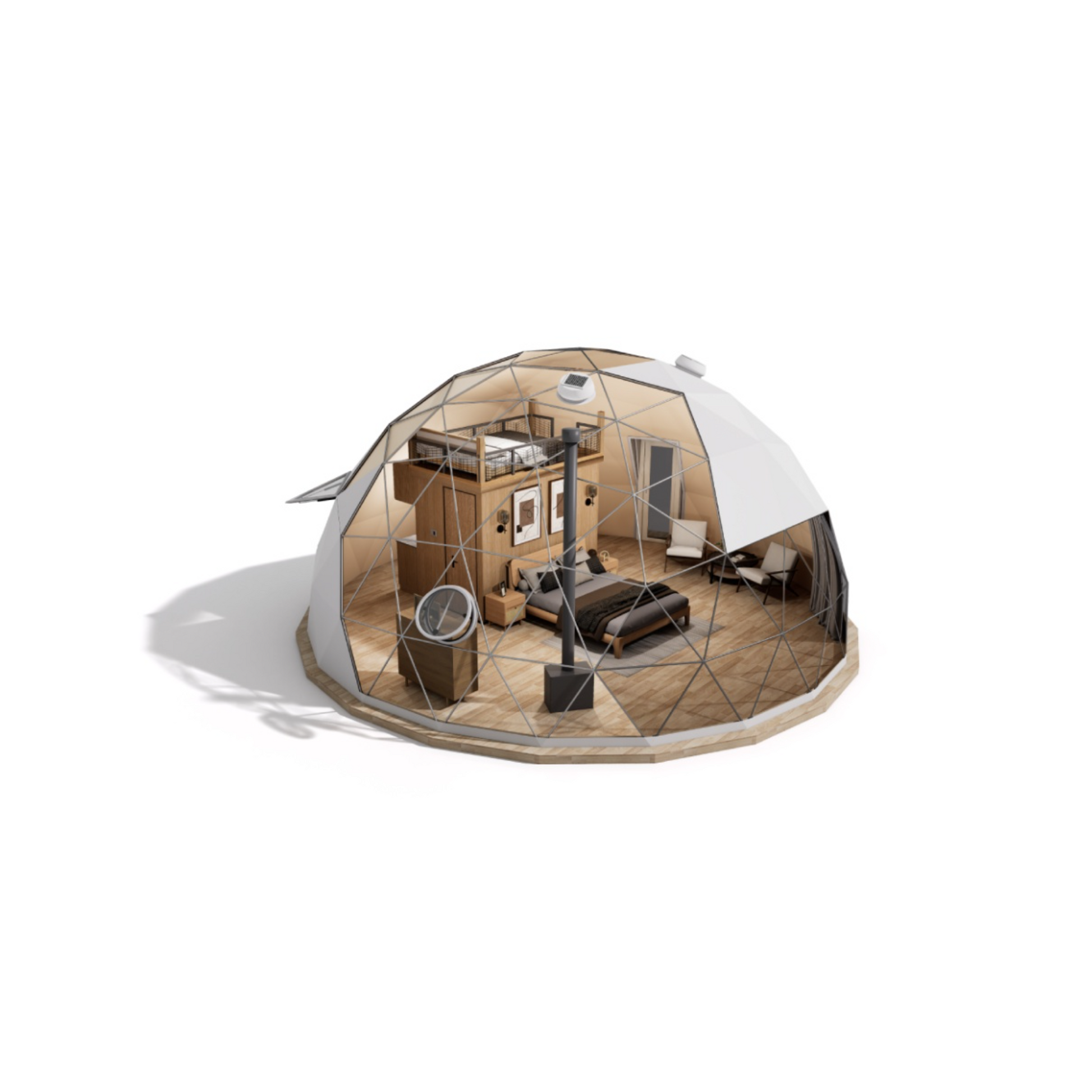 The 8M Dome provides over 500 ft² of space, making it ideal for multi-room layouts. With the ability to include integrated kitchens and bathrooms, it is perfect for long-term glamping or resort installations.