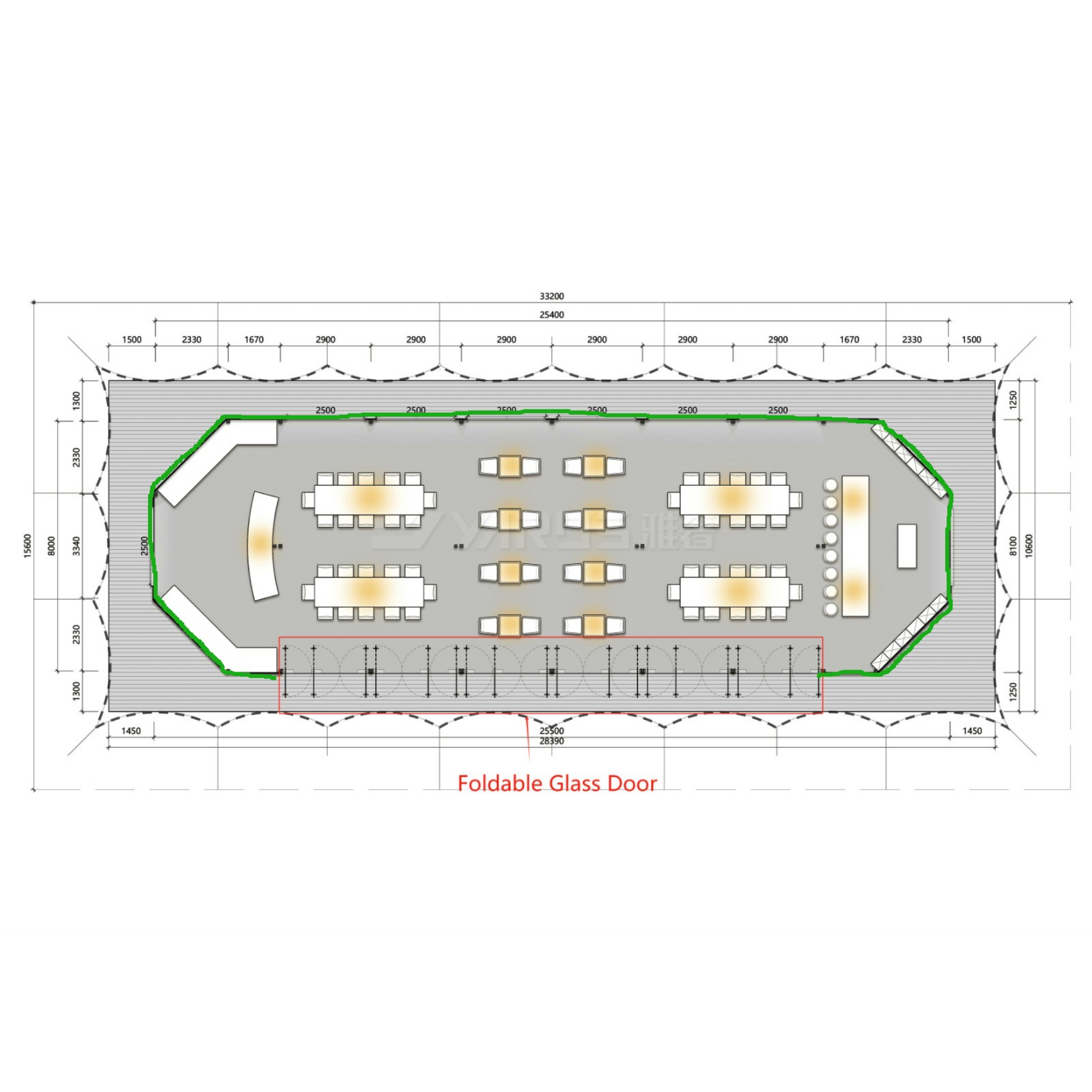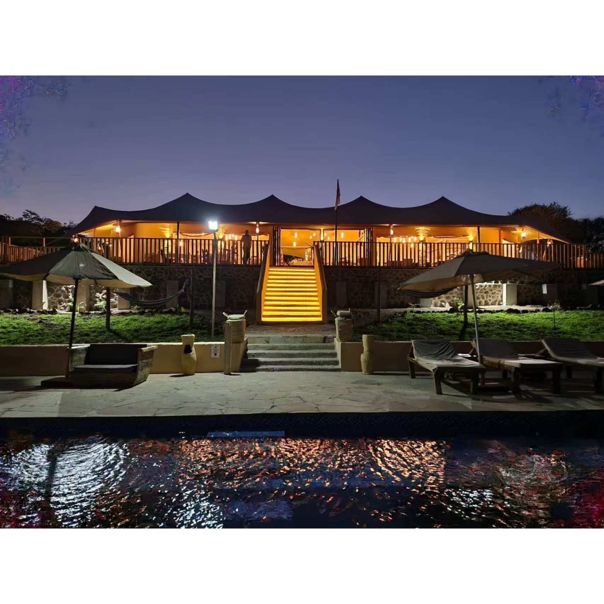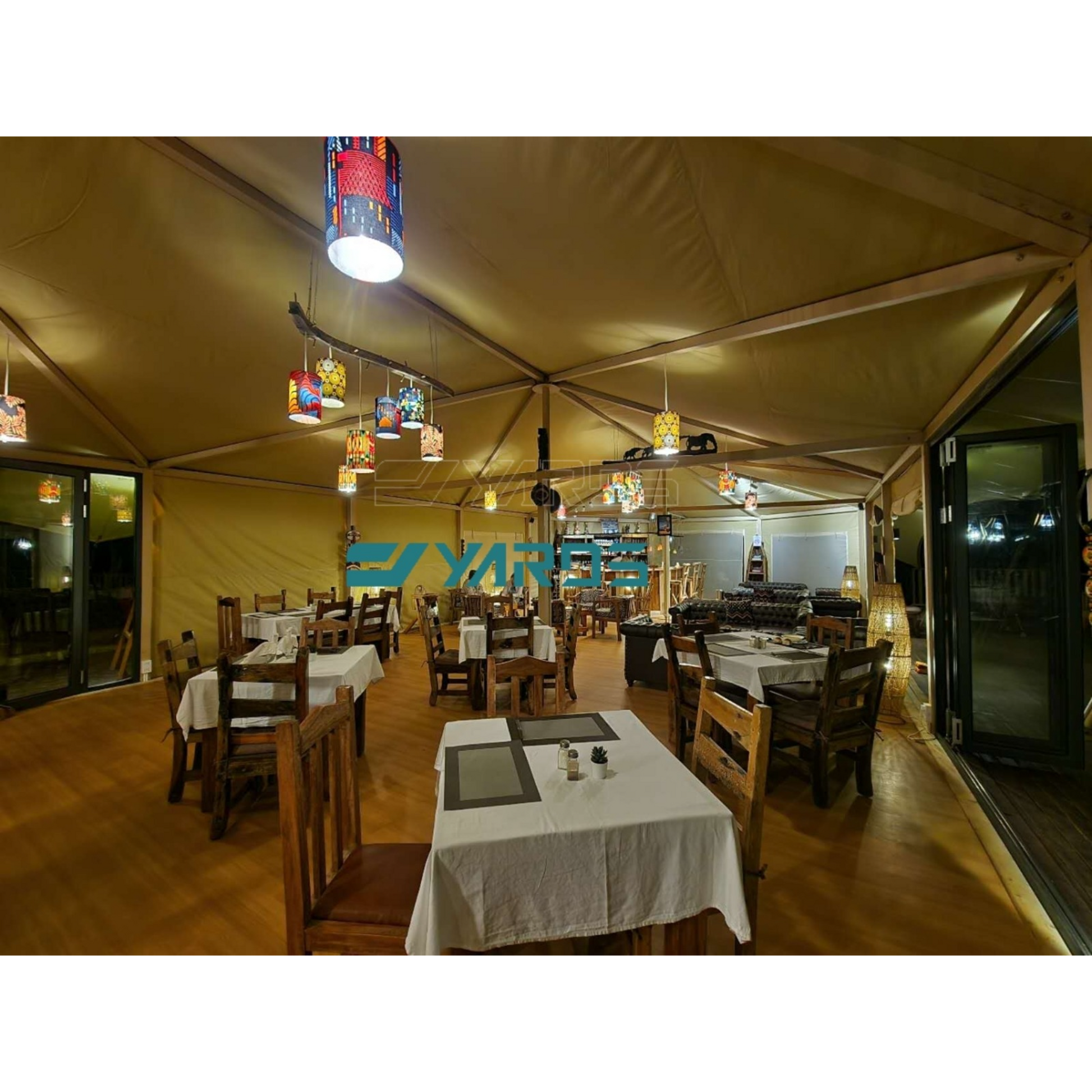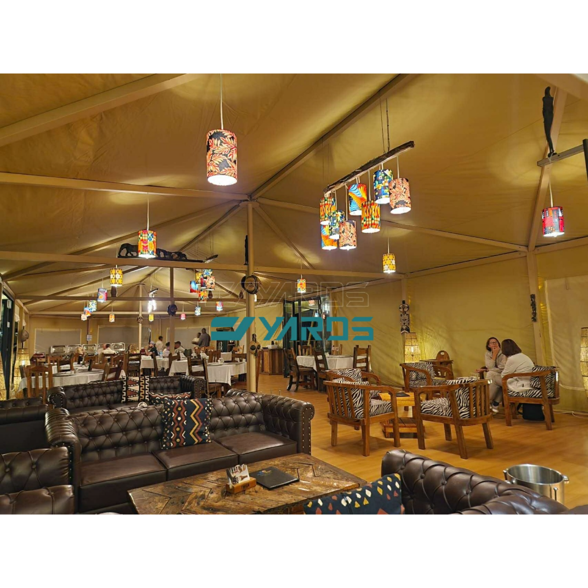 The ER193 Stretch Tent is a Large Multifunctional Service Hall. It is identical in design and function to the ER145, providing the same versatility and space for large events or communal spaces. It stands as a premium offering in luxury tent solutions for larger accommodations.