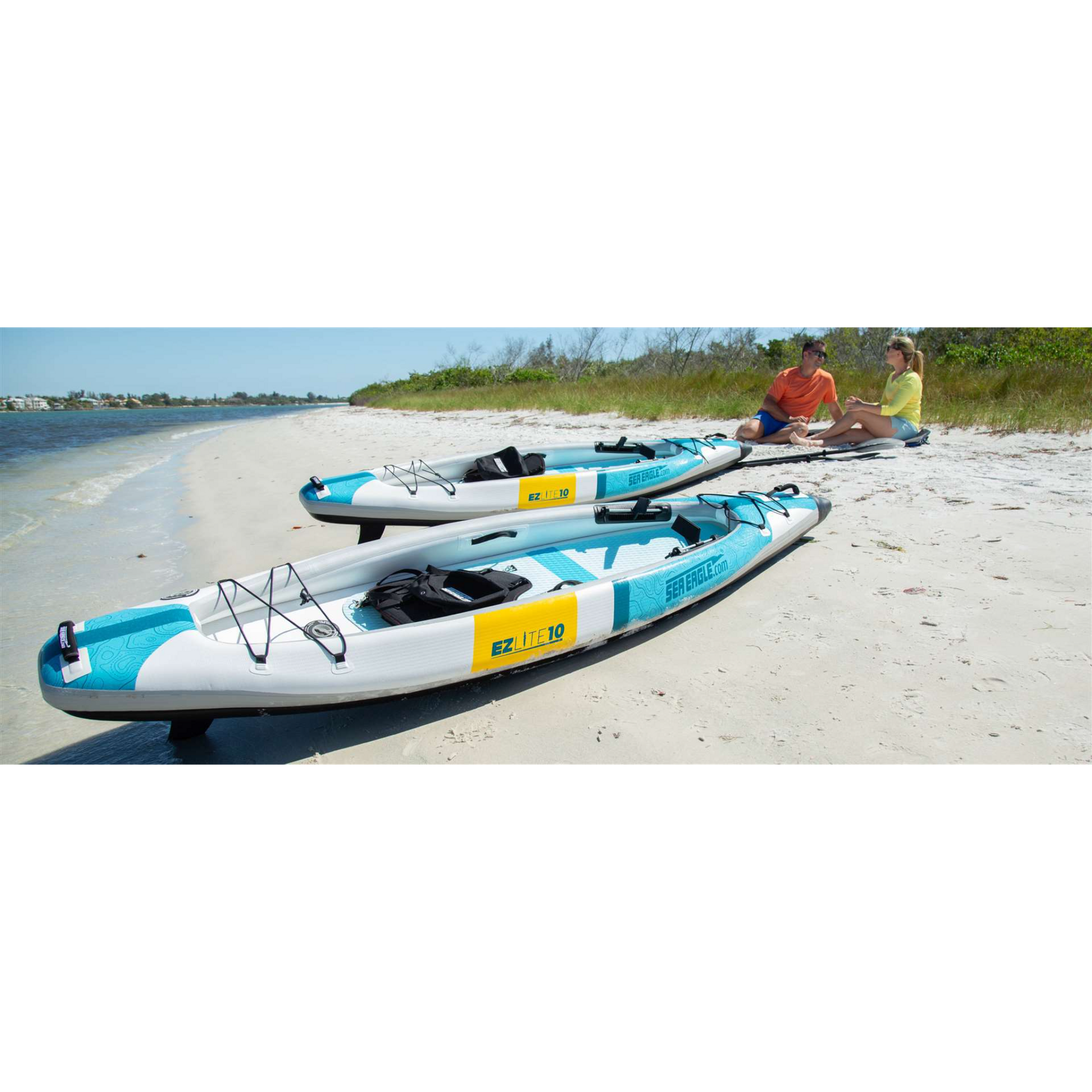 The Sea Eagle EZLite10™ is an ultra-lightweight and compact inflatable kayak perfect for solo paddlers. Its superior portability, ease of setup, and versatility make it ideal for beginners and seasoned paddlers alike, whether you're exploring calm lakes or rivers.