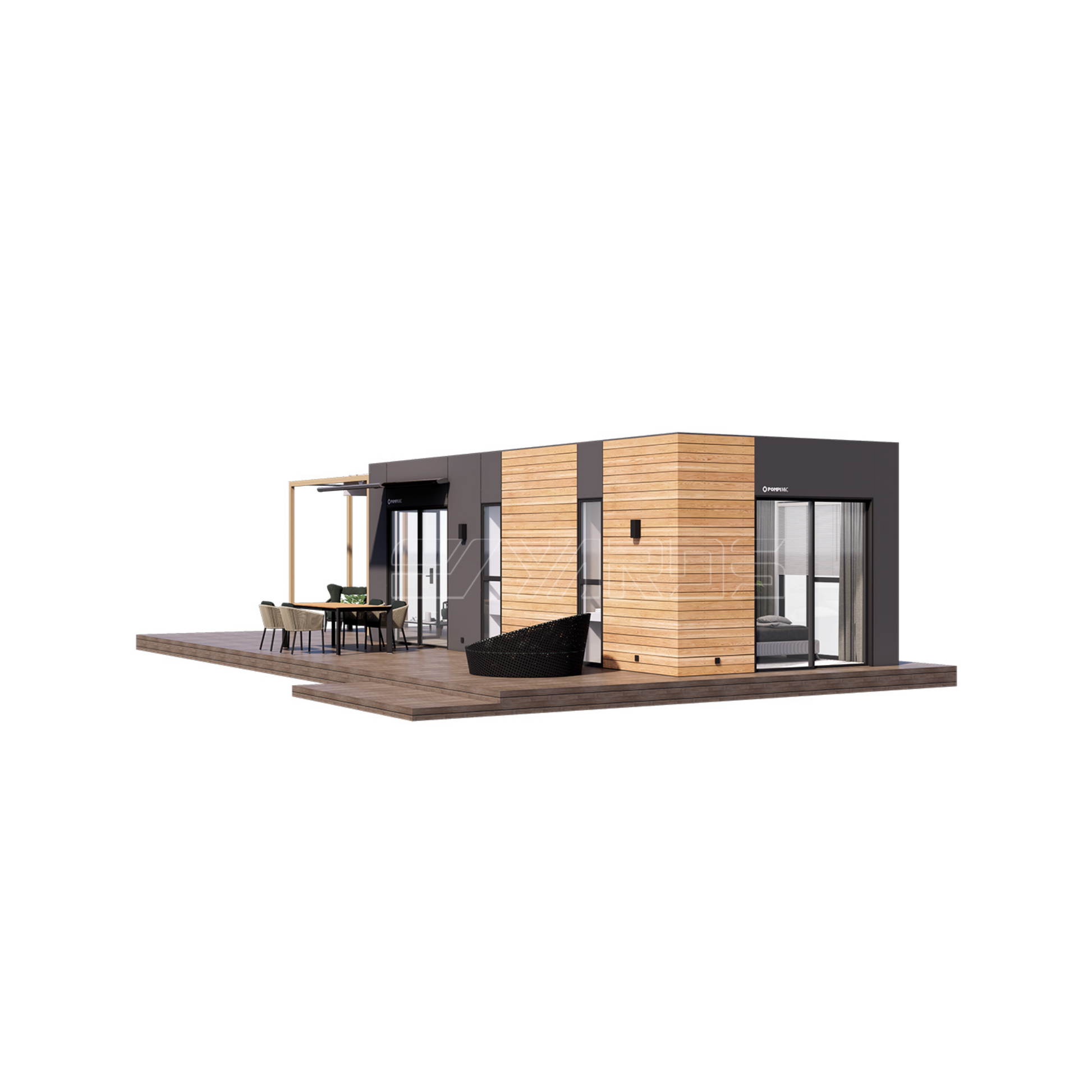 - Exterior wall materials (depending on specification from the manufacturer): 2 mm aluminum panel with fluorocarbon coating, Cedar board, WPS board (wood plastic composite)
