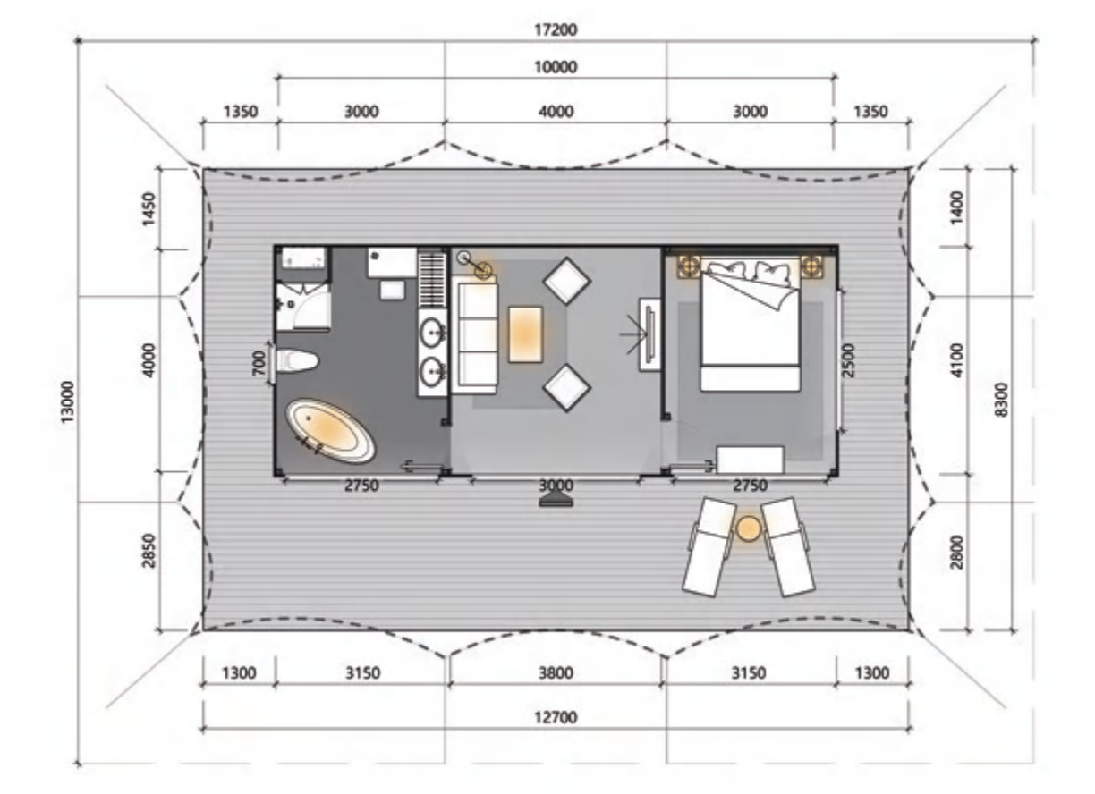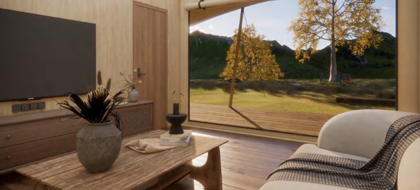 The TR40 Twin Peaks Medium Stretch Tent delivers a spacious and elegant glamping experience for individuals or couples. With its iconic twin-peaks structure, robust build, and expansive veranda, this model is ideal for nature retreats, eco-resorts, or private getaways that demand both comfort and sophistication.